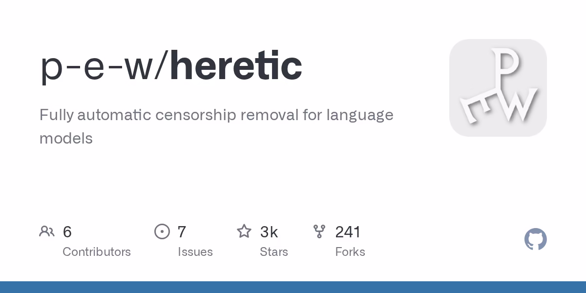 Heretic, açık kaynak kodlu LLM frameworkü olan PyTorch tabanlı, Python dilinde geliştirilmiş bir araç. Temel amacı, eğitilmiş bir dil modelinin içerisinde ki reddetme mekanizmasını bulup, modelin diğer yeteneklerini etilemeden güvenlik ayarlarını minimize etmek, hatta etkisiz hale getirmektir.