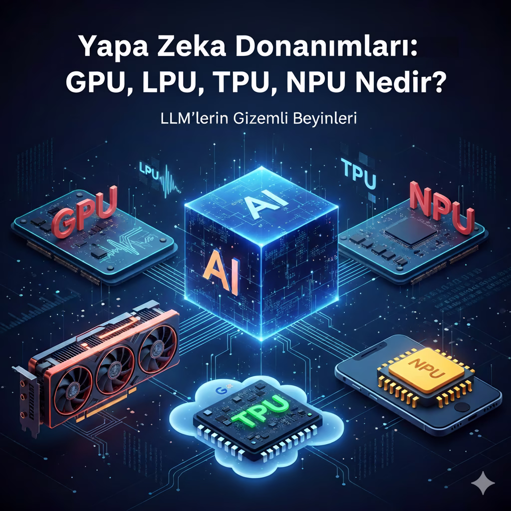 Peki bu kadar çok işlemi gerçekleştiren arka planda ne tür donanımlar bu yükü çekiyor? Bu noktada karşımıza GPU, LPU, TPU ve NPU donanımları karşımıza çıkıyor. Bu donanımlardan en aşina olduğumuz GPU. Peki LPU, TPU ve NPU nedir?